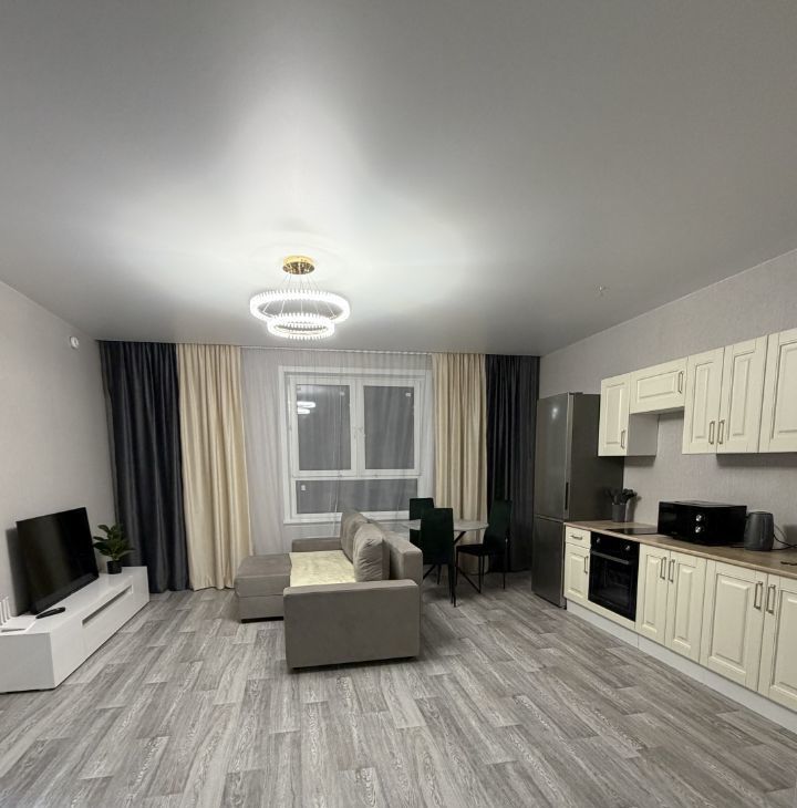 Квартира выполнена в современном стиле: качественный ремонт, новая мебель и техника, продуманная планировка и приятная светлая цветовая гамма. Всё в состоянии нового — без следов эксплуатации.