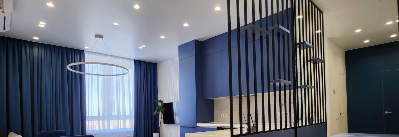 Кухня-гостиная: Сердце дома с лаконичным гарнитуром, перегородками в стиле лофт и уютной обеденной зоной.