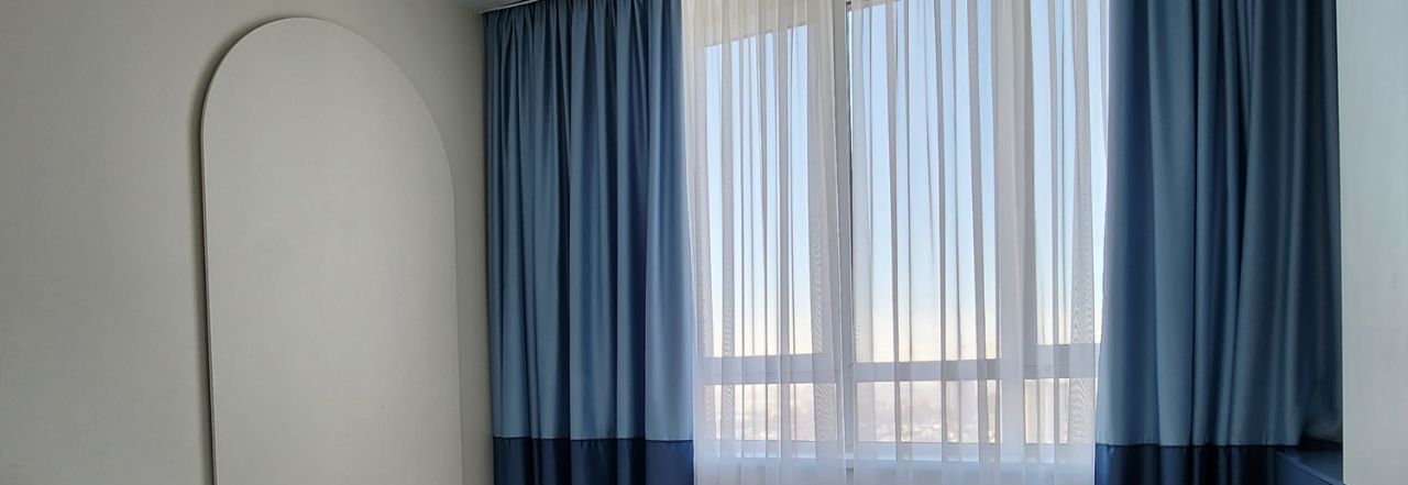 Мастер-спальня: Зона отдыха с вместительным шкафом для хранения вещей и будуаром, плотными шторами для идеального сна и мягким светом.