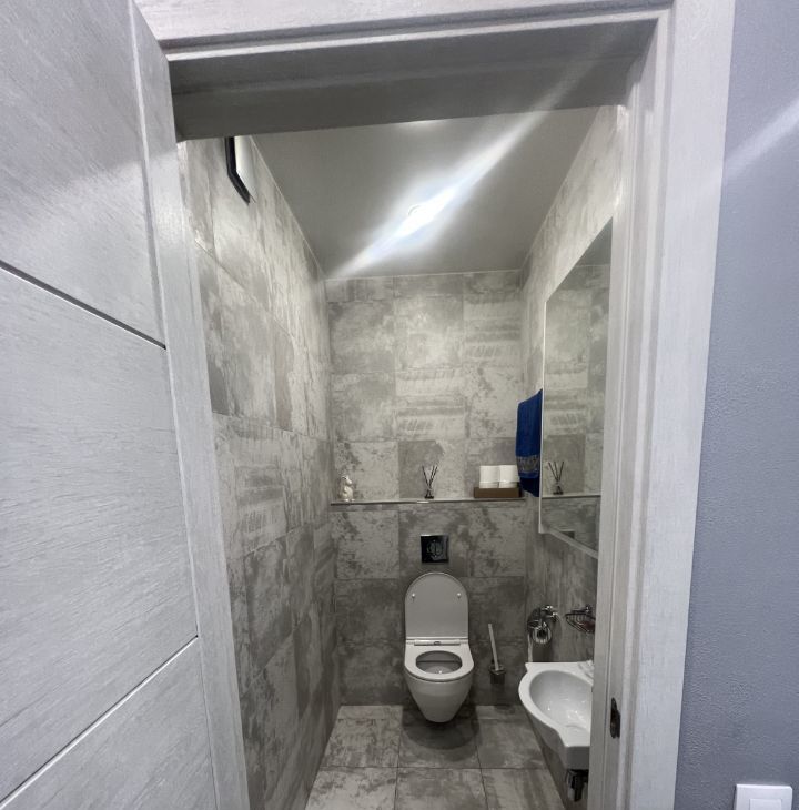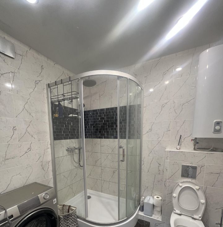 Ванная комната оборудована душевой кабиной, есть один совмещенный и один отдельный санузел.