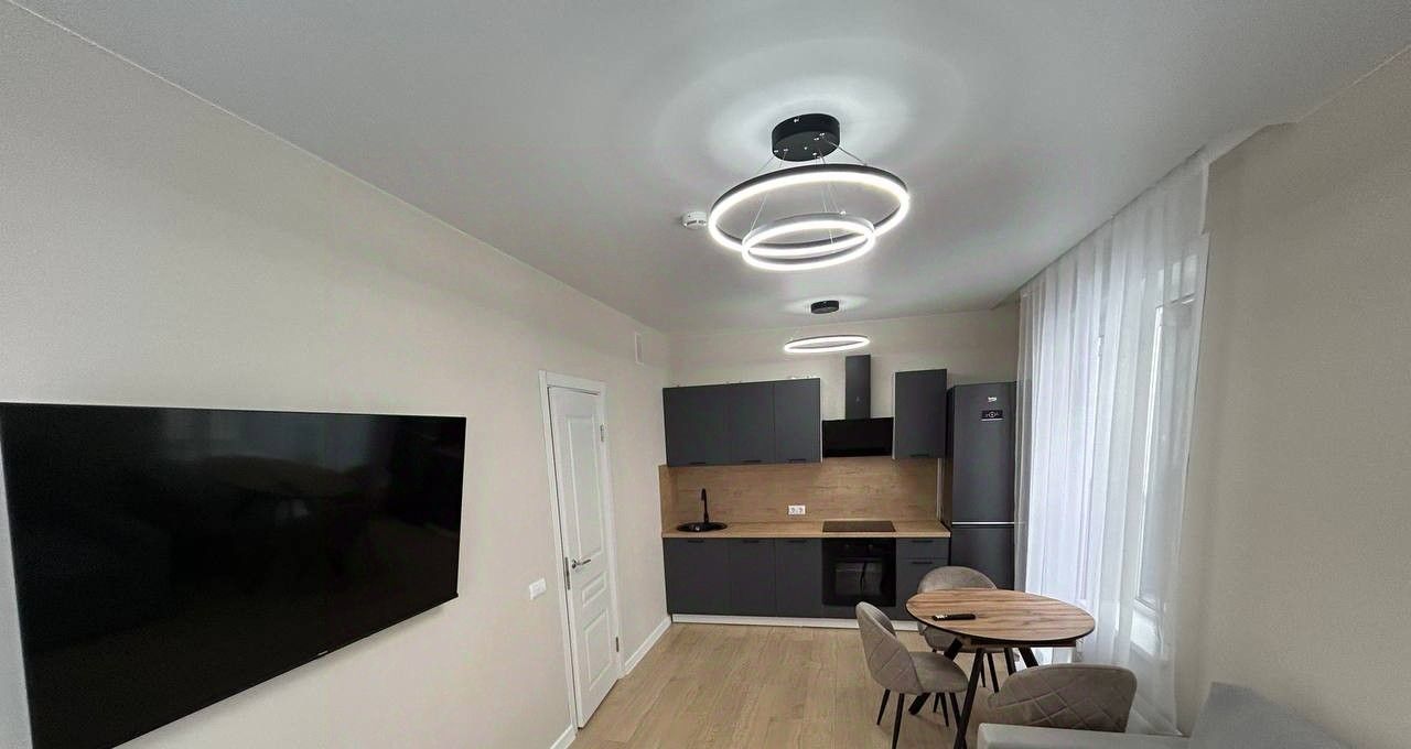Удобная планировка студии — гостиная + кухня + 2 спальни (можно использовать как отдельные комнаты)
