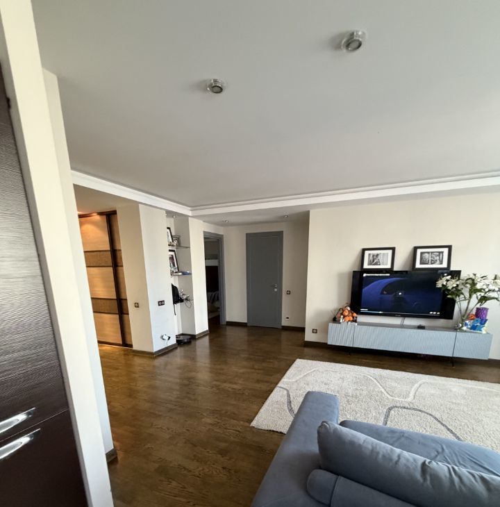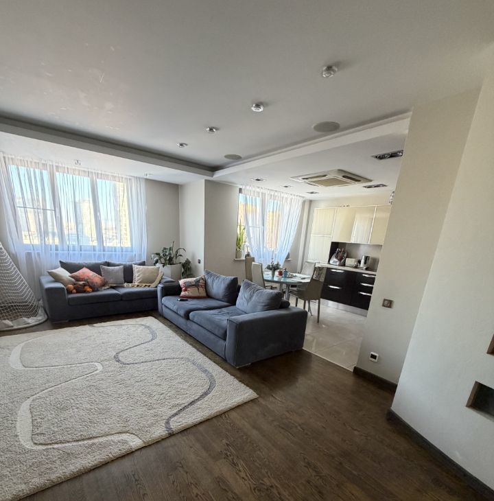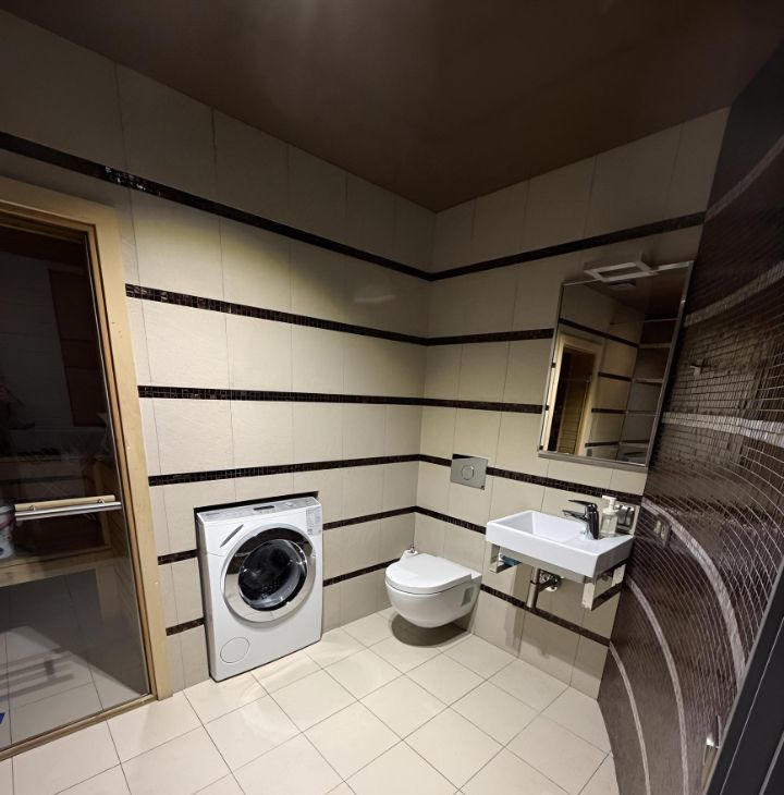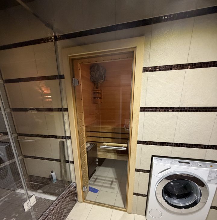 В квартире выполнен стильный дизайнерский ремонт, что создает атмосферу комфорта и уюта. Планировка включает три комнаты, а также два совмещенных санузла, что особенно удобно для большой семьи. Кухня просторная, что позволяет разместить всю необходимую технику и мебель. Сауна!!!