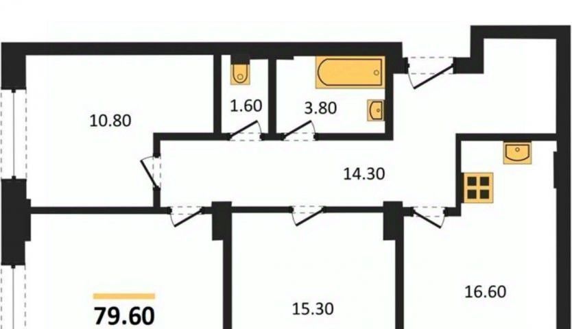 3-к кв. Новосибирская область, Новосибирск ул. Коминтерна, 120 (79.6 м²)