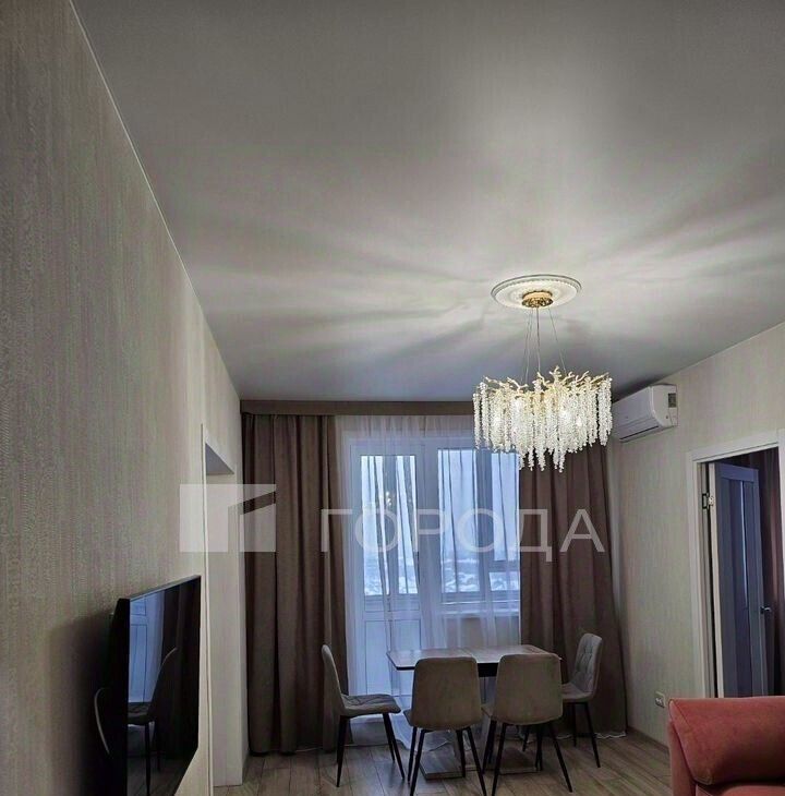 Общая площадь квартиры составляет 64 кв. м, жилая — 45 кв. м, площадь кухни — 8 кв. м. Евроремонт, изолированные комнаты, окна выходят на улицу. Есть балкон.