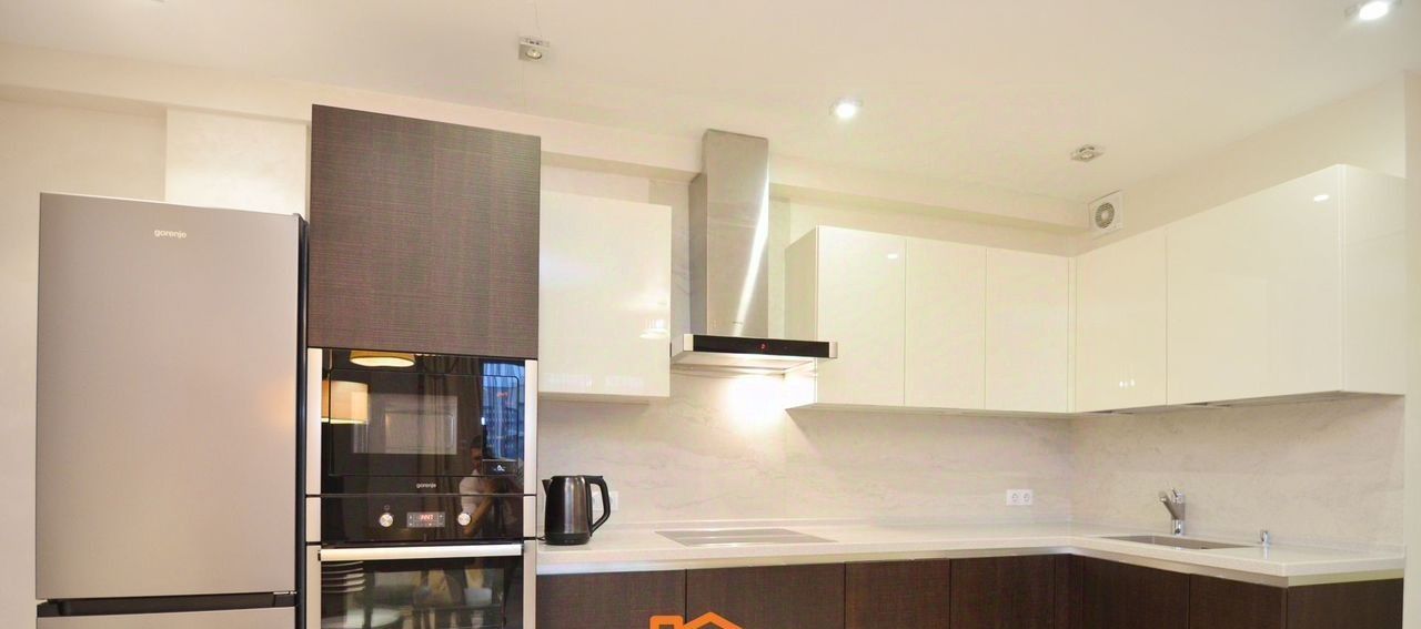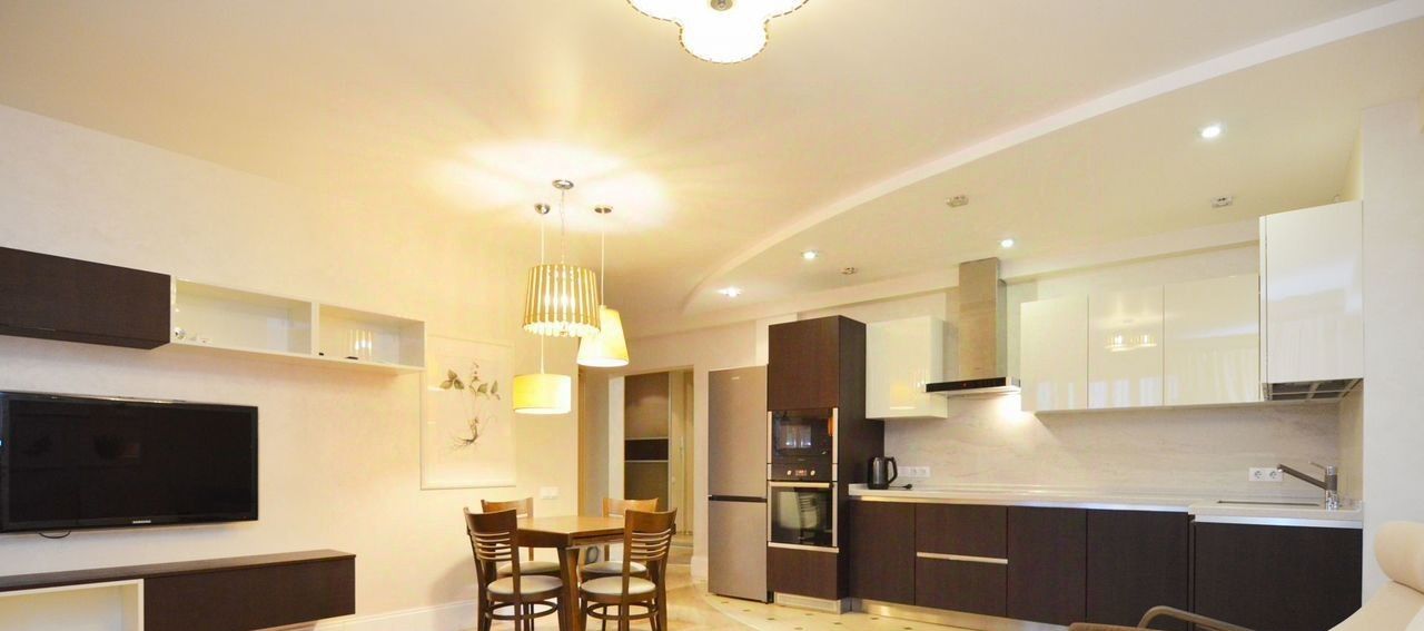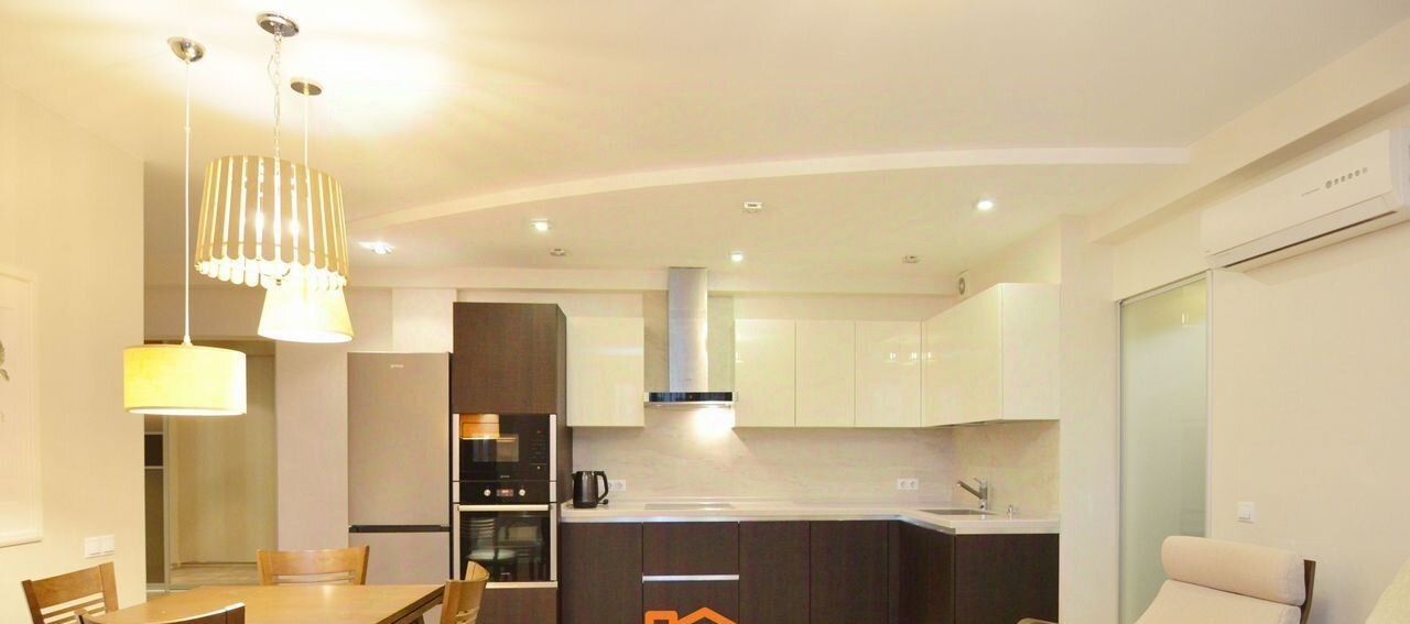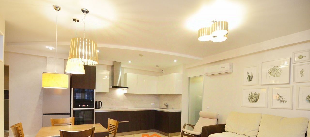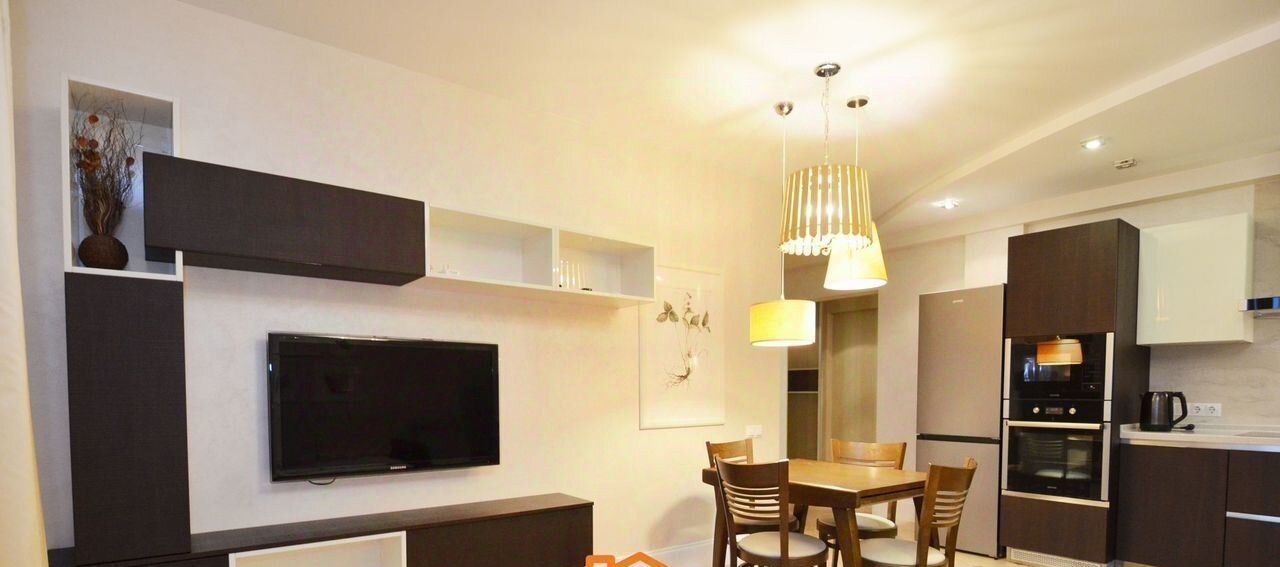 В квартире изолированные комнаты, что обеспечивает комфорт и приватность. Просторная кухня площадью 12 м² оснащена современной бытовой техникой, включая холодильник, плиту и посудомоечную машину. В гостиной имеется телевизор и удобный диван.