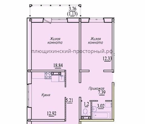 2-к кв. Новосибирская область, Новосибирск ул. Семьи Шамшиных, 93 (43.2 м²)