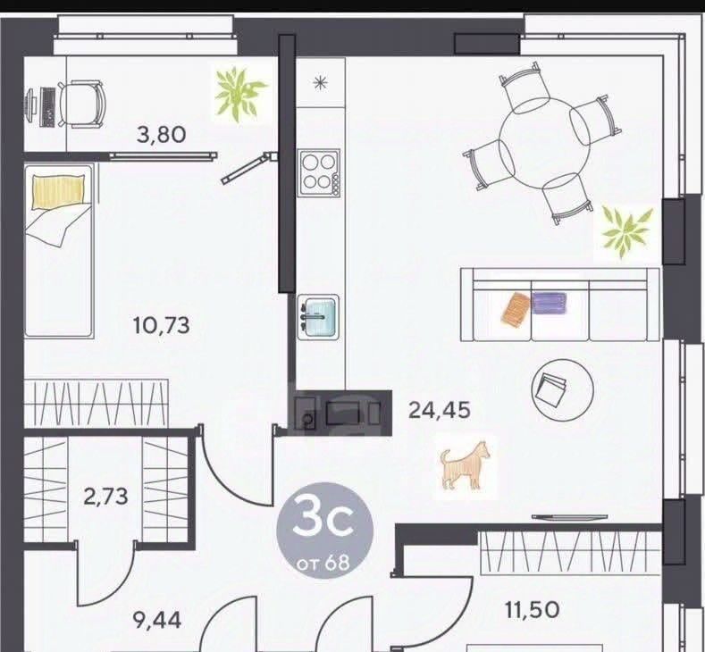 3-к кв. Новосибирская область, Новосибирск ул. Ясный Берег, 27 (68.0 м²)
