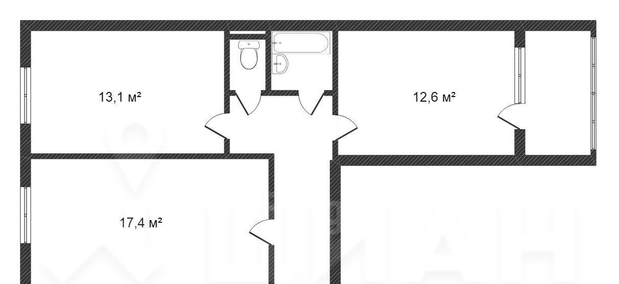 3-к кв. Новосибирская область, Новосибирск Народная ул., 32/1 (61.8 м²)
