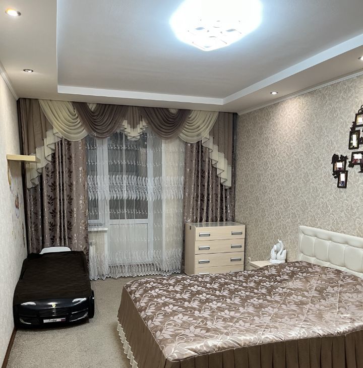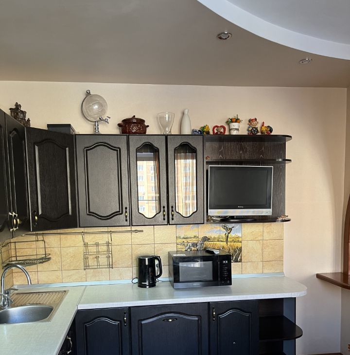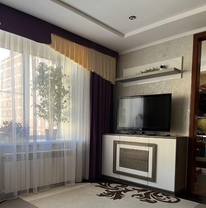 Квартира укомплектована мебелью и бытовой техникой. Внутреннее пространство состоит: гостиная, кухня, спальня, детская комната, ванная, санузел и две лоджии. Окна квартиры выходят во двор.