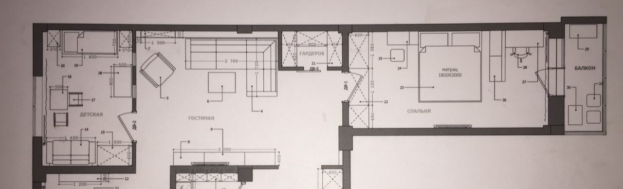 Планировка квартиры: отдельная детская комната, отдельно спальня, отдельно кухня, большая гостиная, увеличена ванная комната, раздельный санузел, гардеробная, балкон с остеклением.