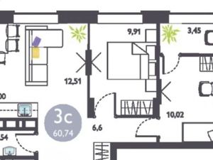 3-к кв. Новосибирская область, Новосибирск ул. Ясный Берег, 23 (57.0 м²)