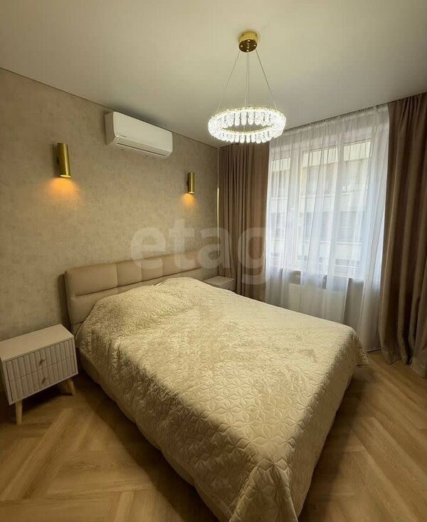 Полностью оборудована: Вам не придется беспокоиться о покупке техники – квартира оснащена всем необходимым: кондиционером для комфортной температуры в любое время года, холодильником, плитой, микроволновой печью, стиральной машиной и телевизором.