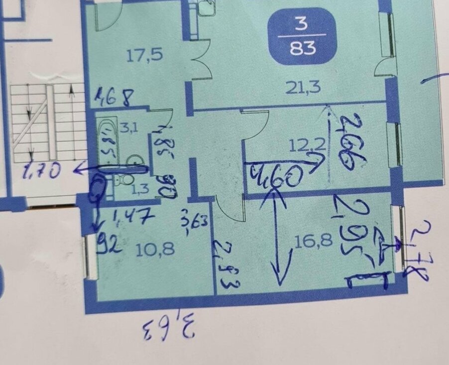 3-к кв. Новосибирская область, Новосибирск ул. Плахотного, 72/1 (80.2 м²)