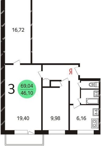 3-комнатная квартира: Новосибирск, Широкая улица, 27 (69.04 м²)