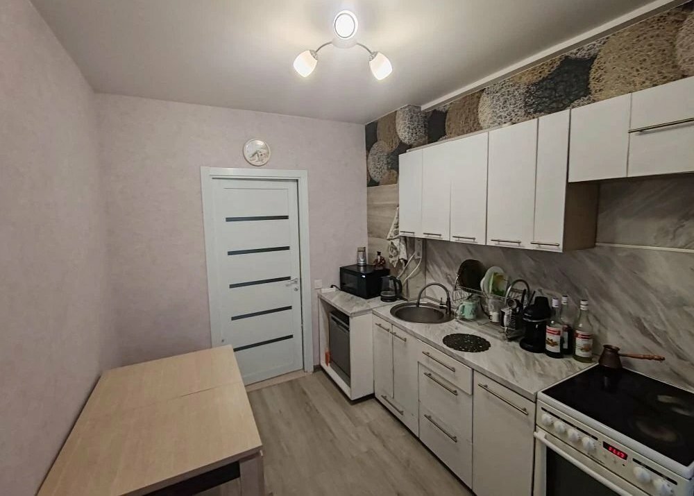 Кухня оборудована современной бытовой техникой, включая холодильник и посудомоечную машину. В квартире установлен кондиционер для поддержания комфортной температуры в любое время года.