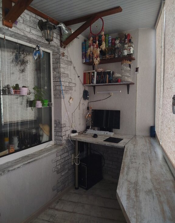 утеплённая лоджия с тёплым полом — дополнительная рабочая зона, где комфортно даже зимой (балконная дверь всегда открыта для циркуляции тепла);