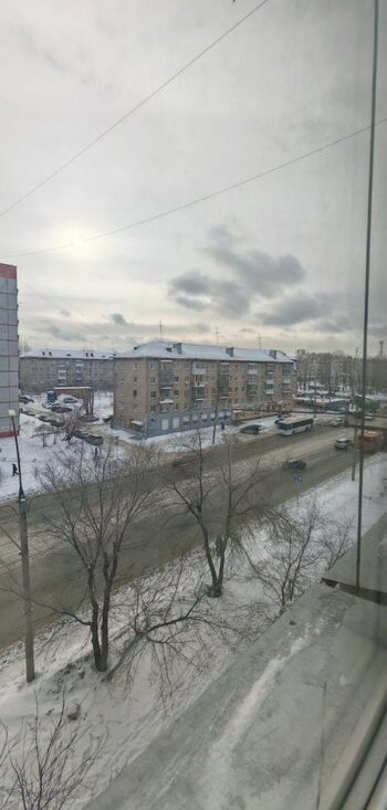 Окна выходят во двор , остальные окна открывают вид на город.
