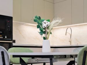 Квартира находится в тихом и зеленом спальном районе, который славится развитой инфраструктурой.