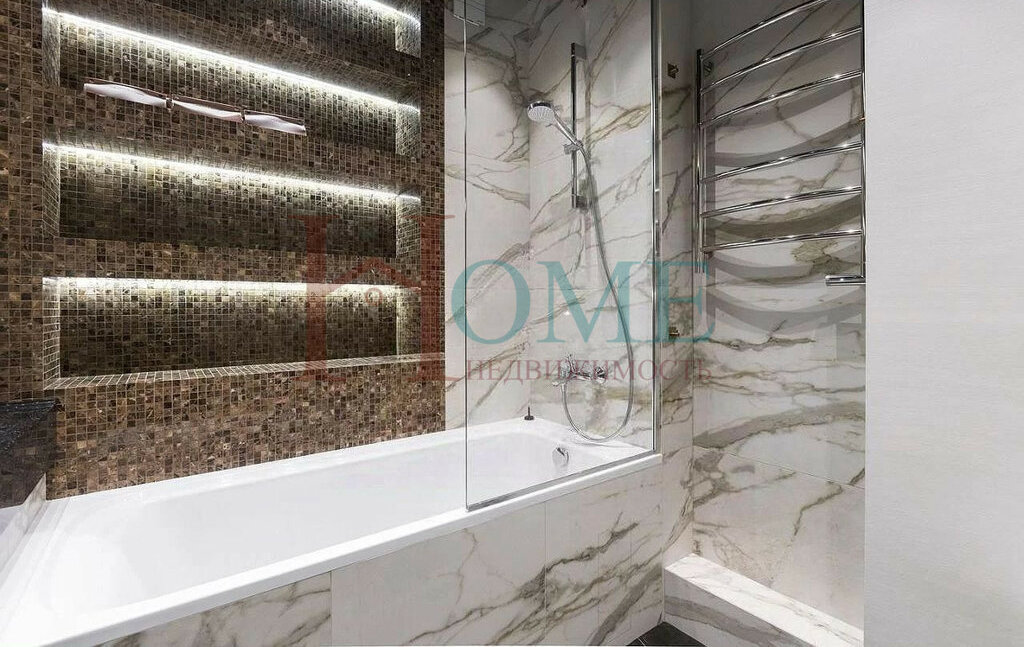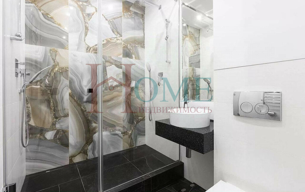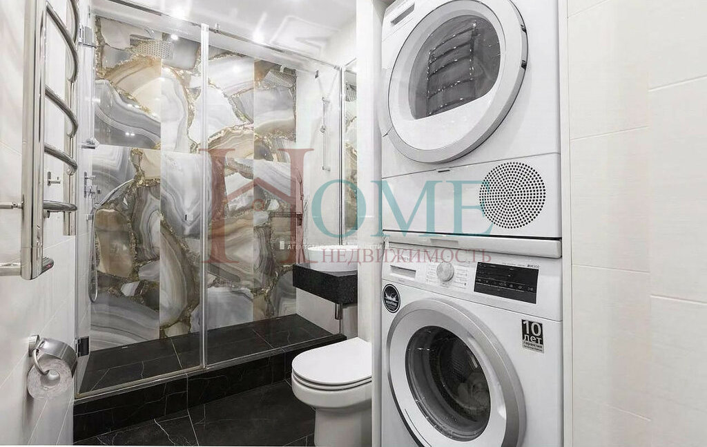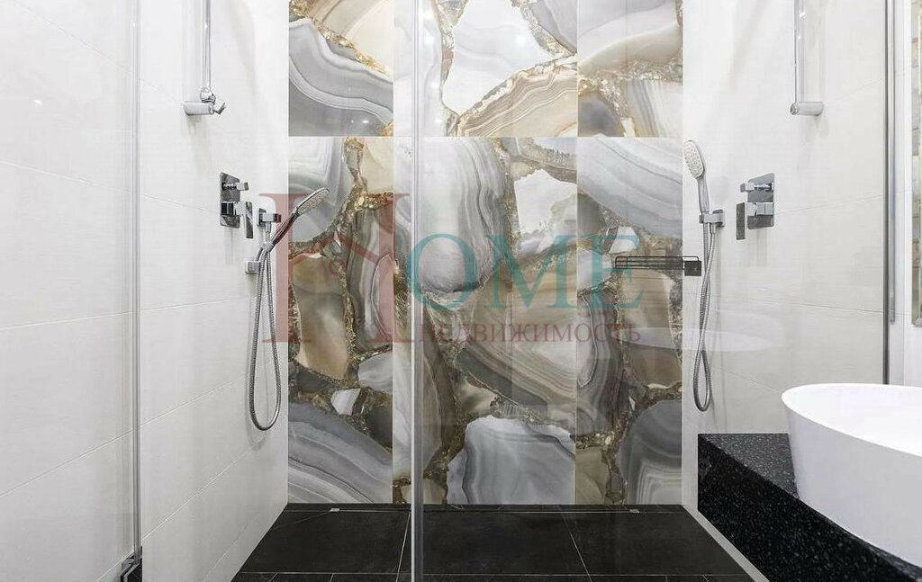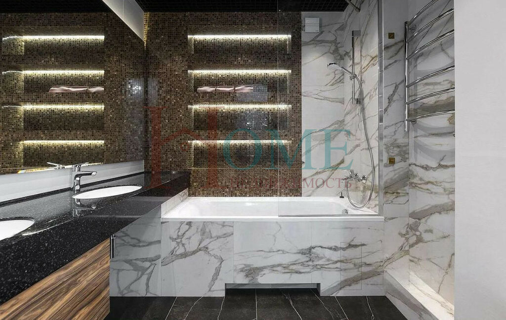 • Два сан. узла 4.7 м² и 5.9 м², стиральная, сушильная машины, ванна, две душевые, итальянский кафель