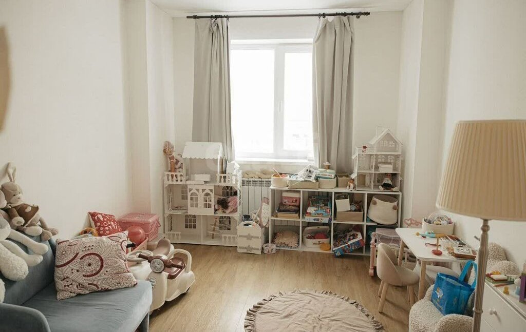 1. Дeтcкaя 14 м2. В комнате шкаф для вещей, кресло, детские всякие штуки (если надо оставим всё, кроме игрушек). Можно перетащить детскую кровать из спальни и сделать отдельную комнату для ребенка. Если ребенок взрослый, увезем детское и можете поставить своё =)