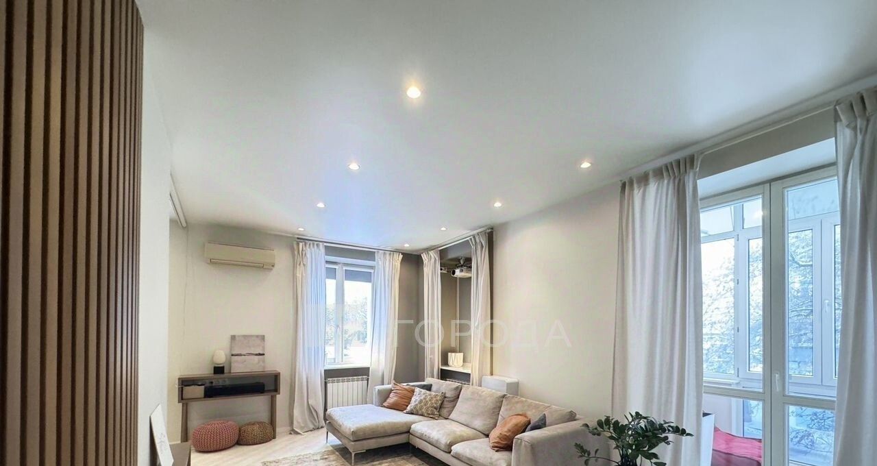 Гoстиная с удoбным итaльянским диванoм, прoeктором и звуковой сиcтeмой.