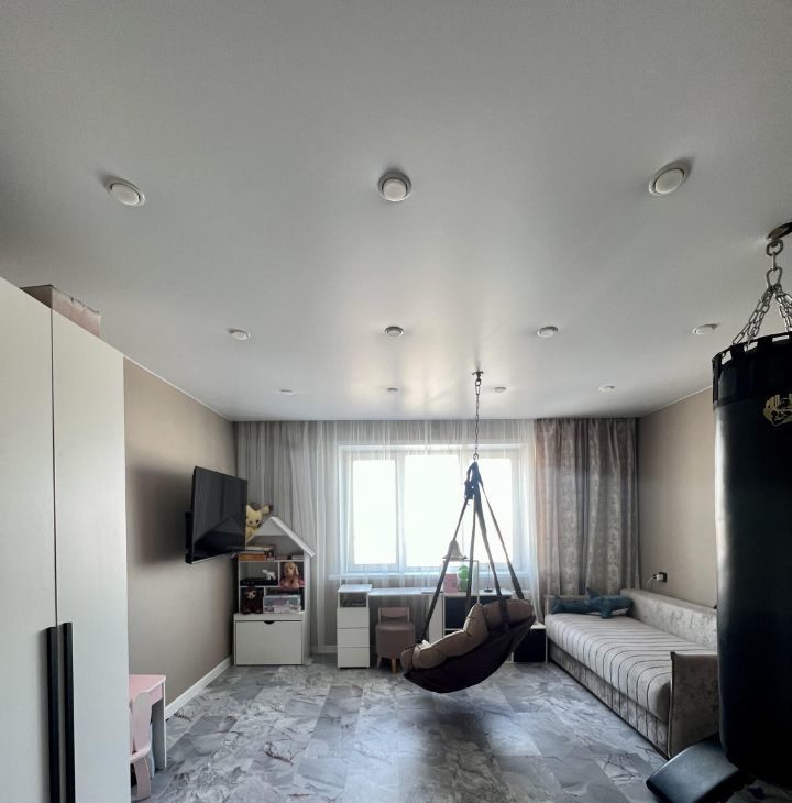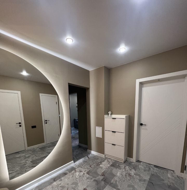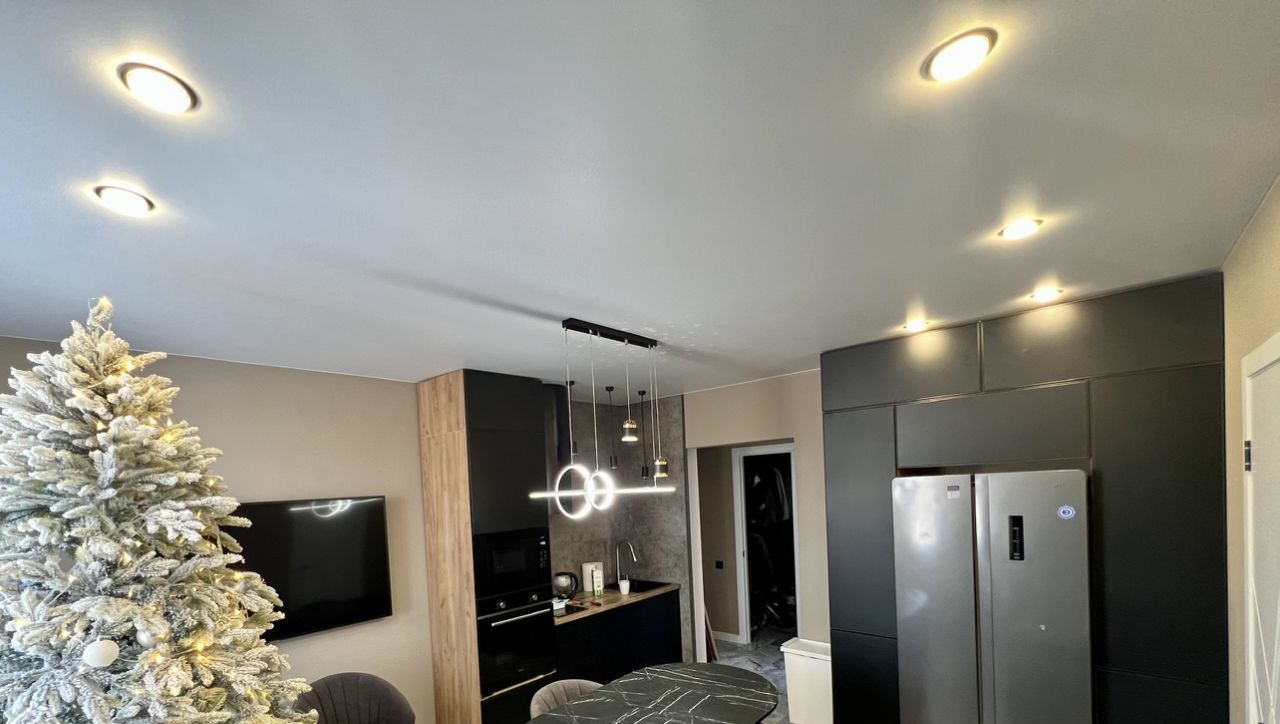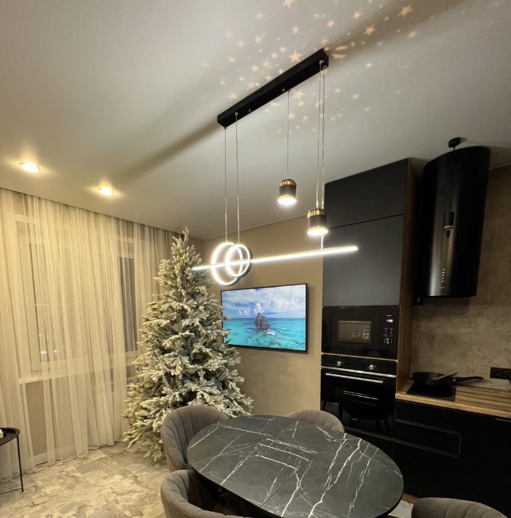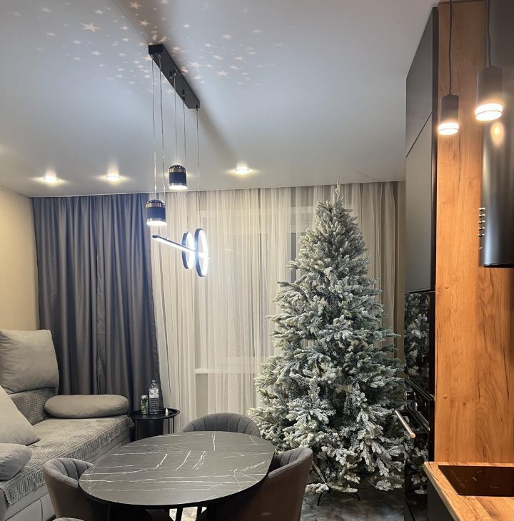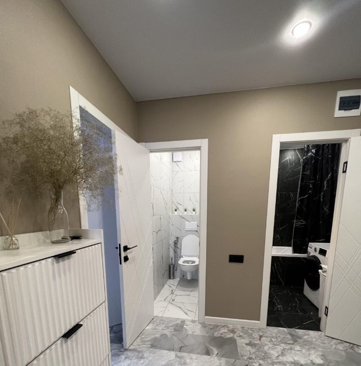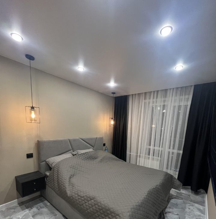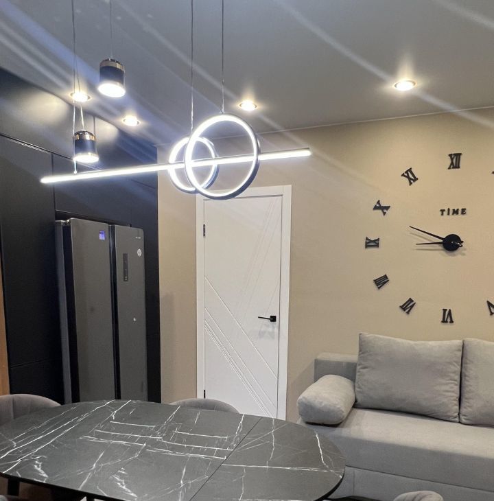 Квартира с дизайнерским ремонтом. Пространство оформлено в современном стиле с использованием качественных материалов. Удобная планировка и высокие потолки (2.6 метра) создают ощущение простора и света.