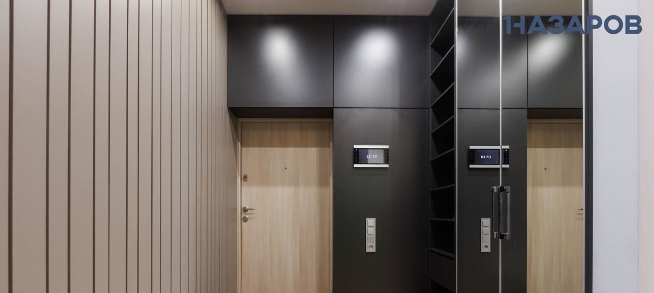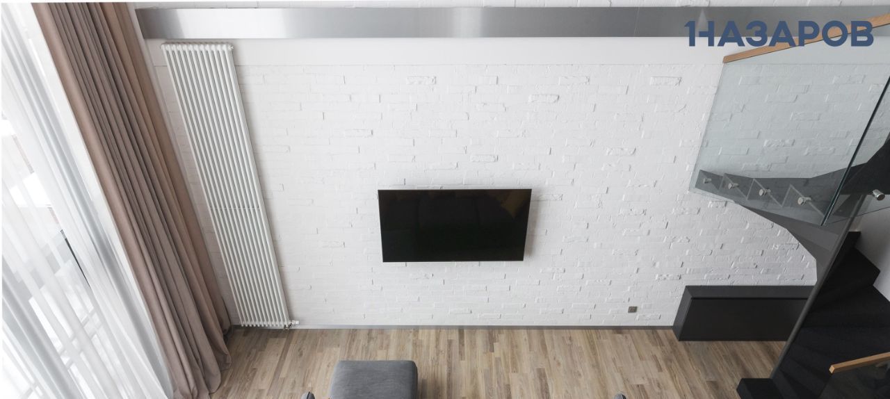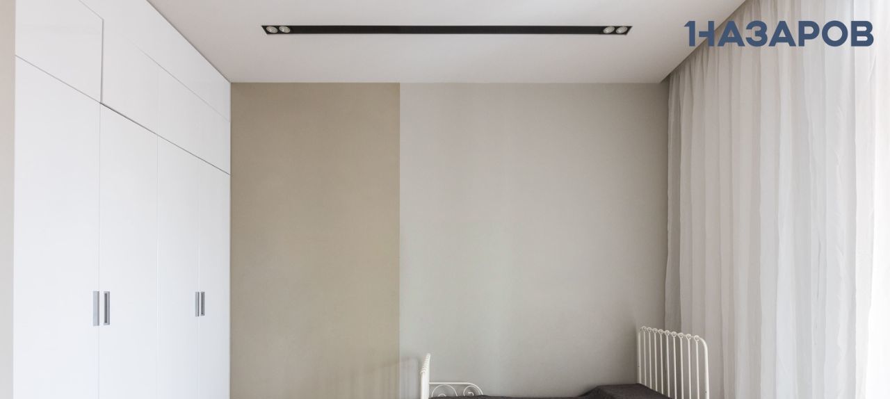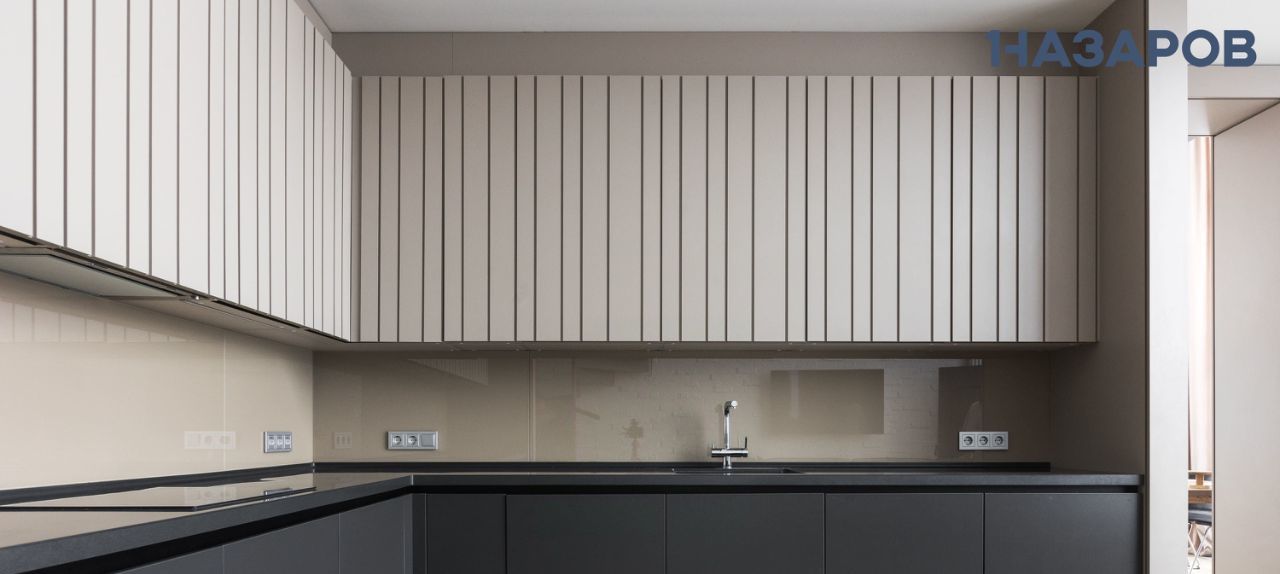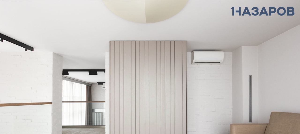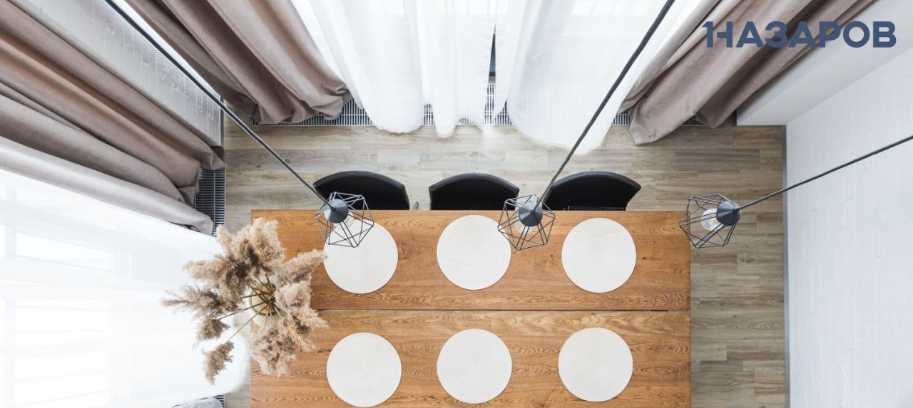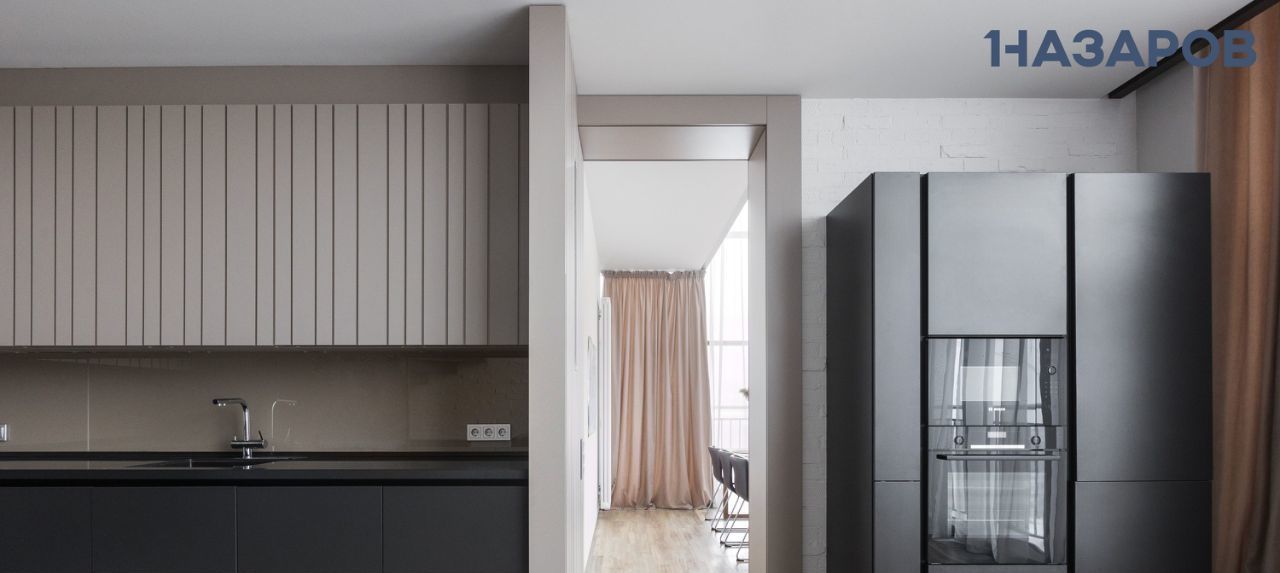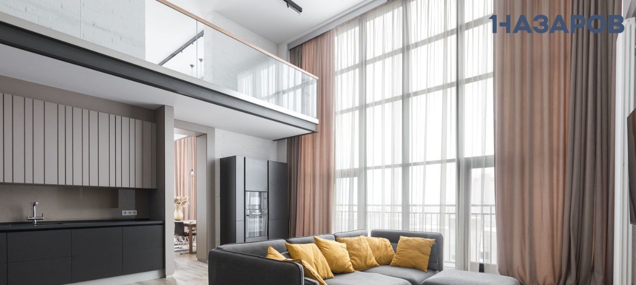Квартира выполнена в современных оттенках off-white и благодаря большим окнам залита естественным светом. Открытая планировка и высокие потолки 6 м в зоне гостиной и столовой усиливают ощущение простора и спокойствия