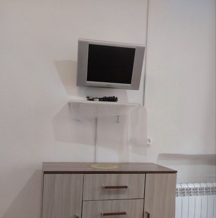 В комнате есть шкаф, комод, телевизор, диван.