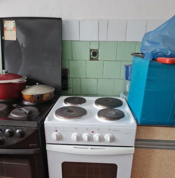 Кухня общая отдельно от комнаты, чтоб не заполнять жилое пространство запахами.