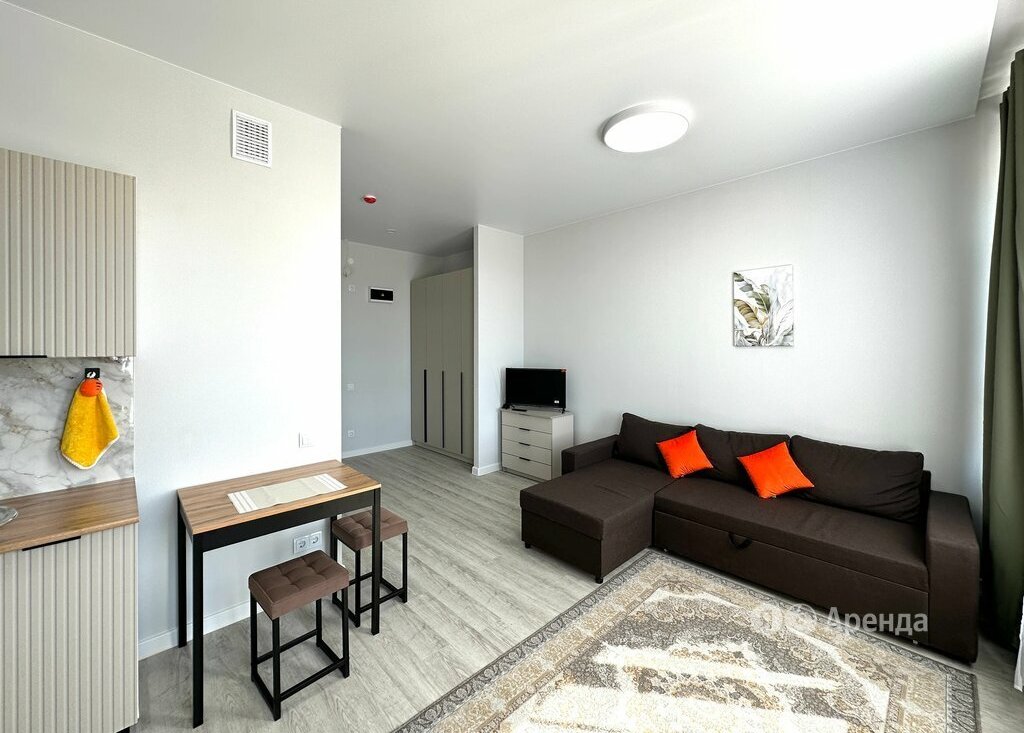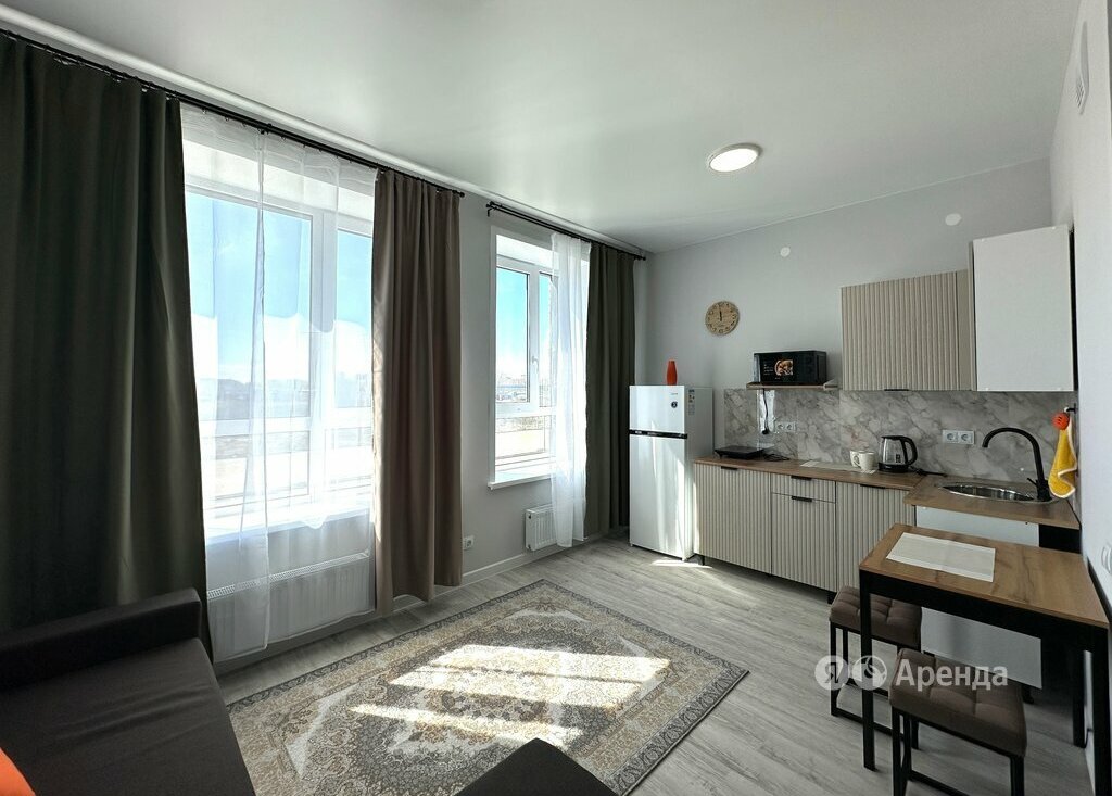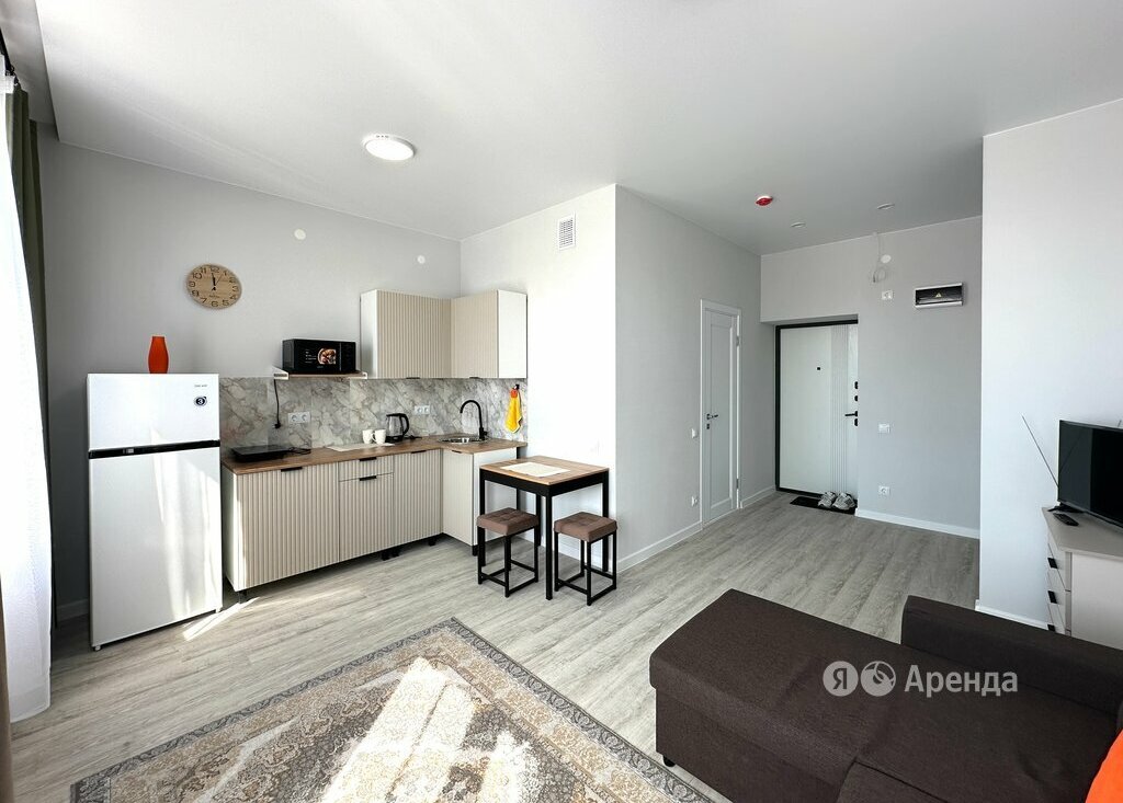 Сдаётся студия площадью 25 кв.м. с евроремонтом на 2 этаже в 10-этажном доме на срок от 11 месяцев. Из техники есть: