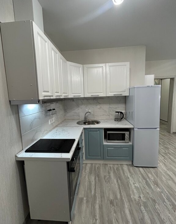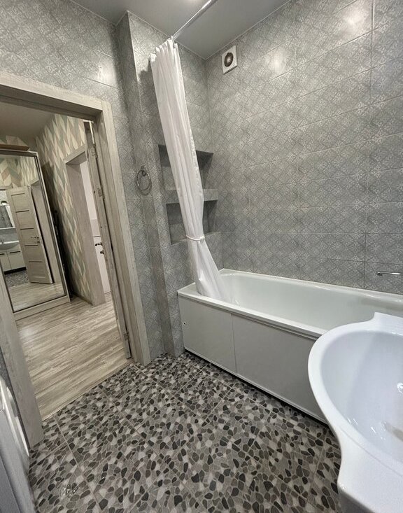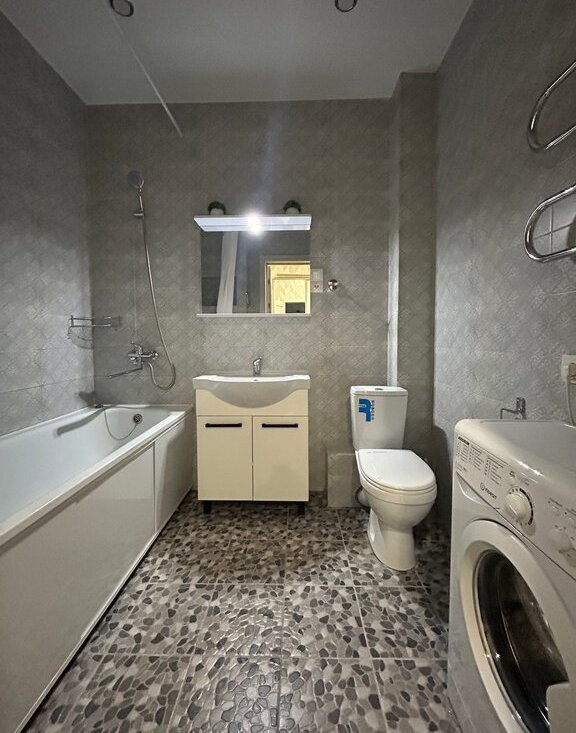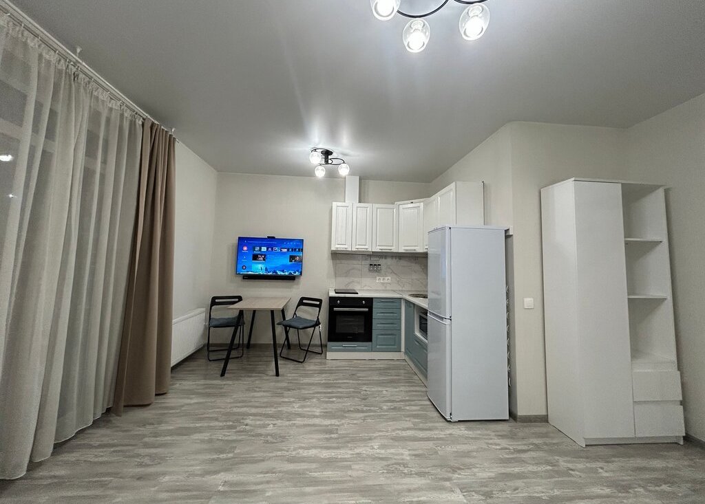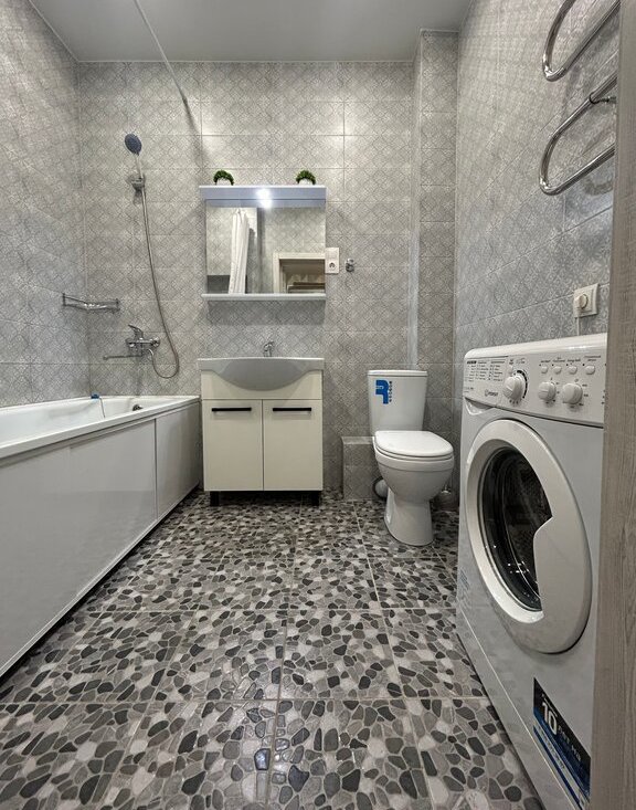 Квартира полностью оборудована всем необходимым: телевизор android tv, саундбар, укомплектованный кухонный гарнитур (холодильник, варочная панель, духовой, микроволновая печь, вытяжка, электрочайник), в прихожей установлен зеркальный шкаф купе, гладильная доска, напольная сушилка для белья, пылесос. В ванной комнате новая стиральная машина.