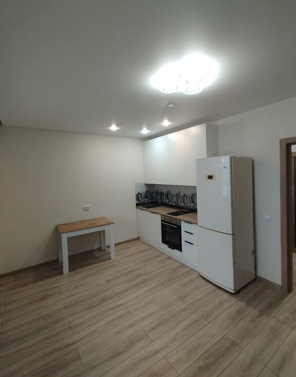 В квартире выполнен качественный, новый ремонт. На полу уложен ламинат, в санузле керамогранит. Установлена новая мебель и кухня. В коридоре большой вместительный шкаф. Есть основная бытовая техника: холодильник, стиральная машина, духовой шкаф. В квартире никто не жил!