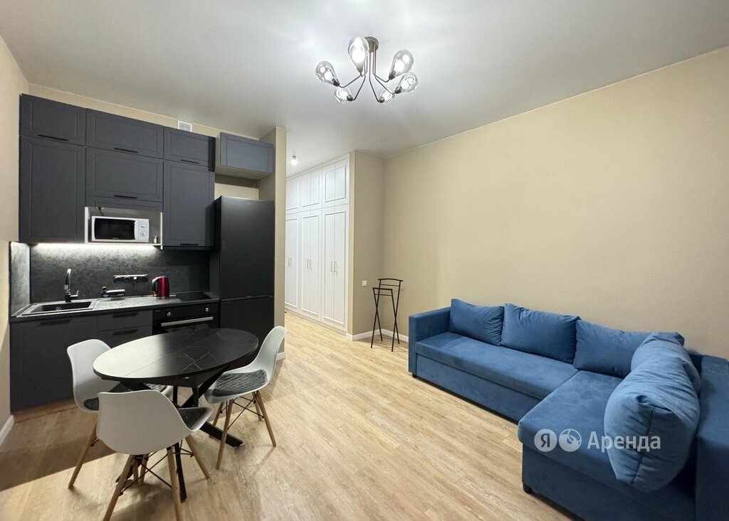 Сдаётся студия площадью 28 кв.м. с дизайнерским ремонтом на 9 этаже в 25-этажном доме на срок от 11 месяцев. Из техники есть: