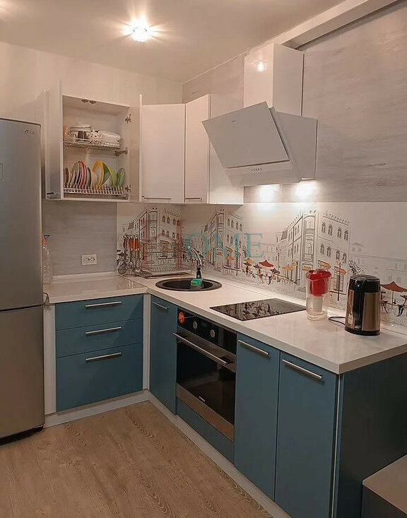 В квартире есть всё необходимое для комфортного проживания: диван раскладной, шкафы, столы, стулья, эл.плита, духовой шкаф, вытяжка, холодильник, чайник, посуда.