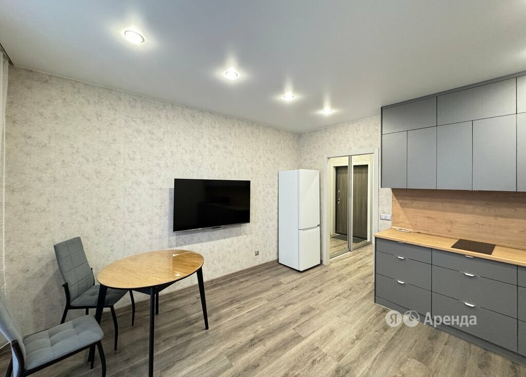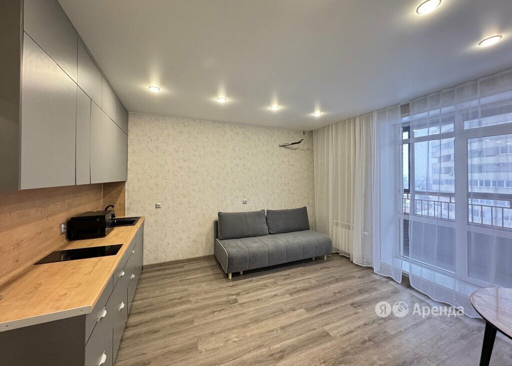 Сдаётся студия площадью 27 кв.м. с евроремонтом на 6 этаже в 22-этажном доме на срок от 11 месяцев. Из техники есть: