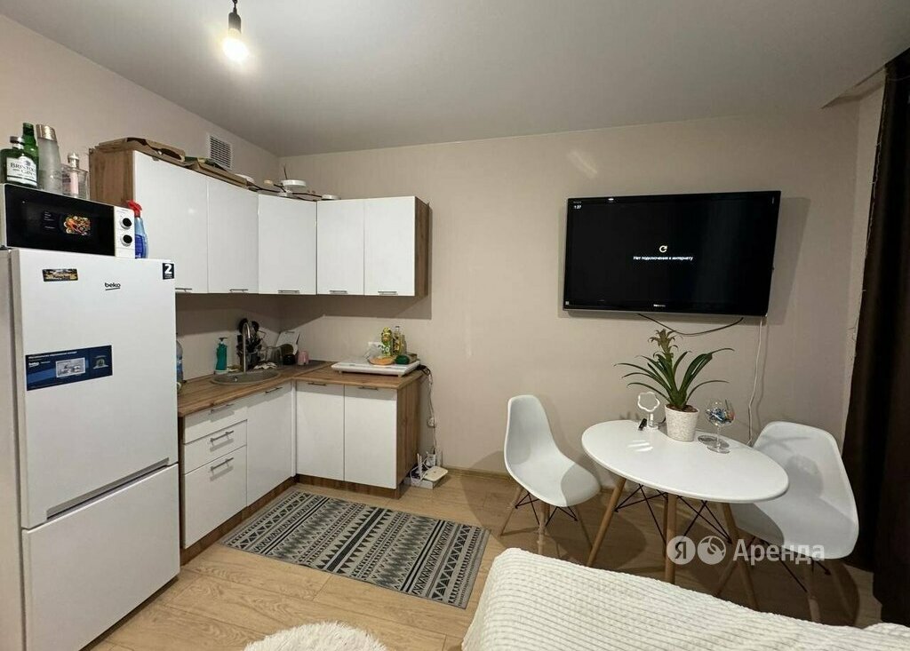 Сдаётся студия площадью 24 кв.м. с евроремонтом на 15 этаже в 17-этажном доме на срок от 11 месяцев. Из техники есть: