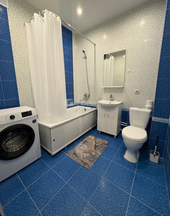 Студия отличается стильным дизайнерским ремонтом, который создаст комфорт и уют для жизни. Общая площадь квартиры составляет 30 кв. м, из которых жилая площадь — 24 кв. м, а площадь кухни — 3 кв. м. Санузел совмещённый.