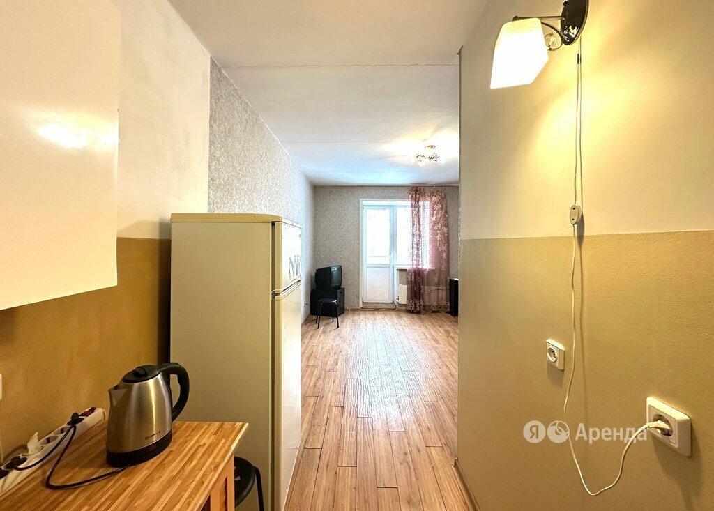 Сдаётся студия площадью 29 кв.м. с косметическим ремонтом на 4 этаже в 9-этажном доме на срок от 11 месяцев. Из техники есть: