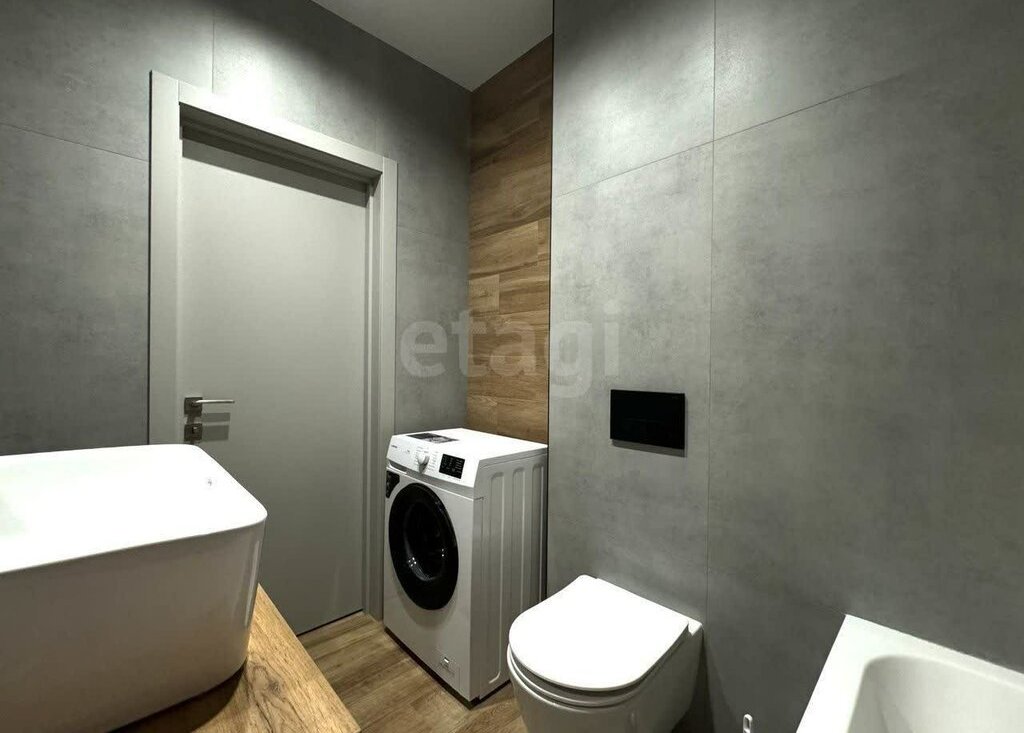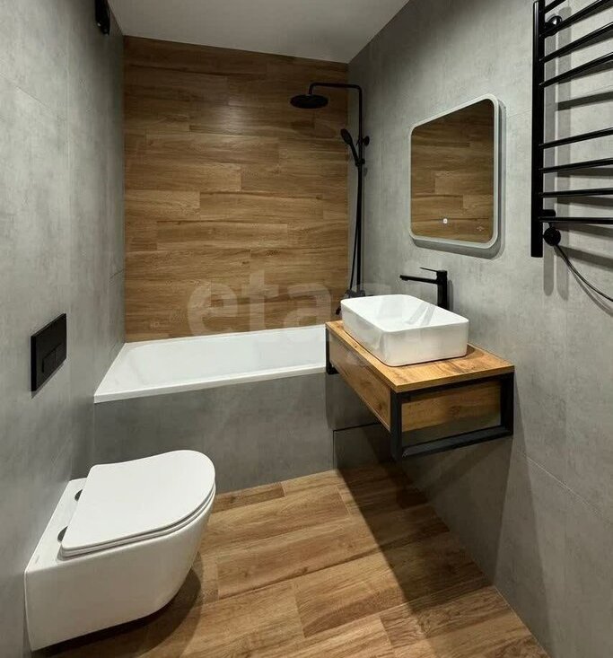 Ремонт выполнен из качественных материалов, включая керамогранит и смеситель с терморегулятором в ванной комнате