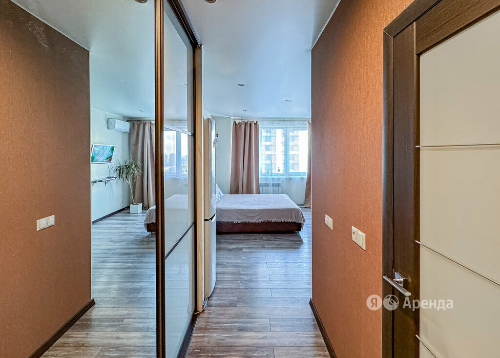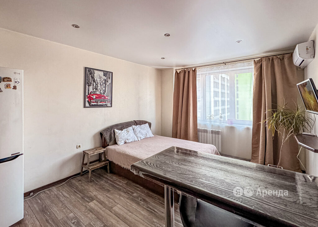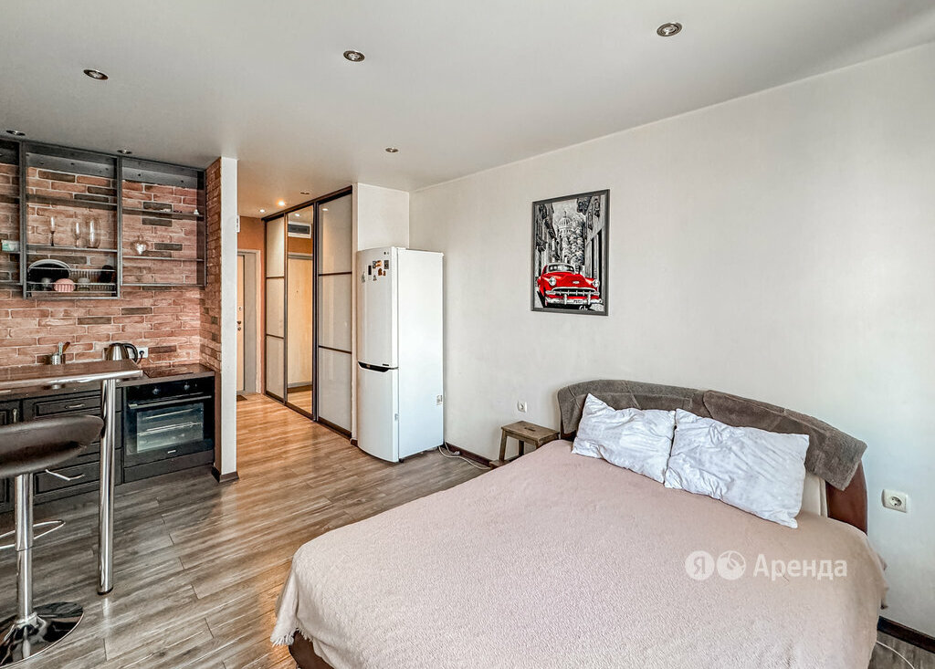 Сдаётся студия площадью 26 кв.м. с евроремонтом на 14 этаже в 17-этажном доме на срок от 11 месяцев. Из техники есть: