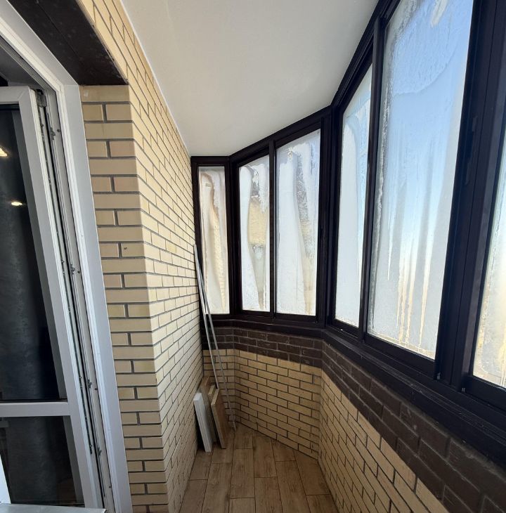 Балкон застекленный, с видом на город.