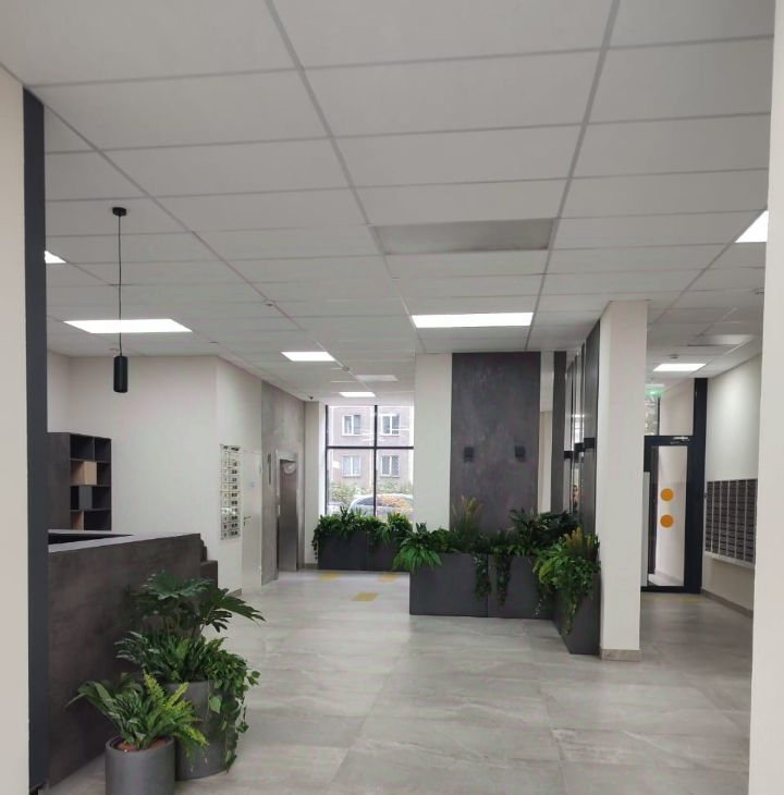 Квартира расположена на 6 этаже монолитно-кирпичного дома, построенного в 2024 году. В доме есть консьерж, три пассажирских и два грузовых лифта. Во дворе закрытая территория с парковкой за шлагбаумом. На первом этаже расположено несколько продуктовых магазинов, а так же зоомагазин.