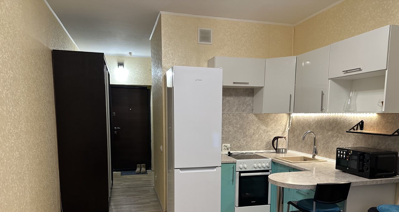 Предлагается в аренду уютная студия площадью 22 кв. м, расположенная на 12-м этаже 25-этажного кирпичного дома. Дом комфорт-класса, построен в 2015 году, все коммуникации новые и надежные.
