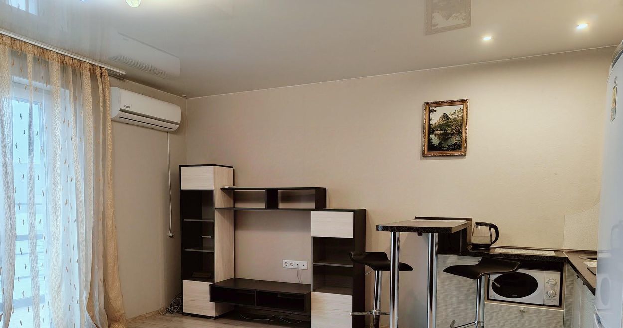 Сдам уютную студию в престижном квартале Европейский берег на длительный срок. Главные козыри этой аренды — закрытый двор за шлагбаумом и витражная лоджия, которая превращает чаепитие в ритуал с видом на город. Внутри — всё продумано до мелочей: кондиционер, вместительный шкаф-купе и вся необходимая техника. Всё работает, всё готово к жизни.