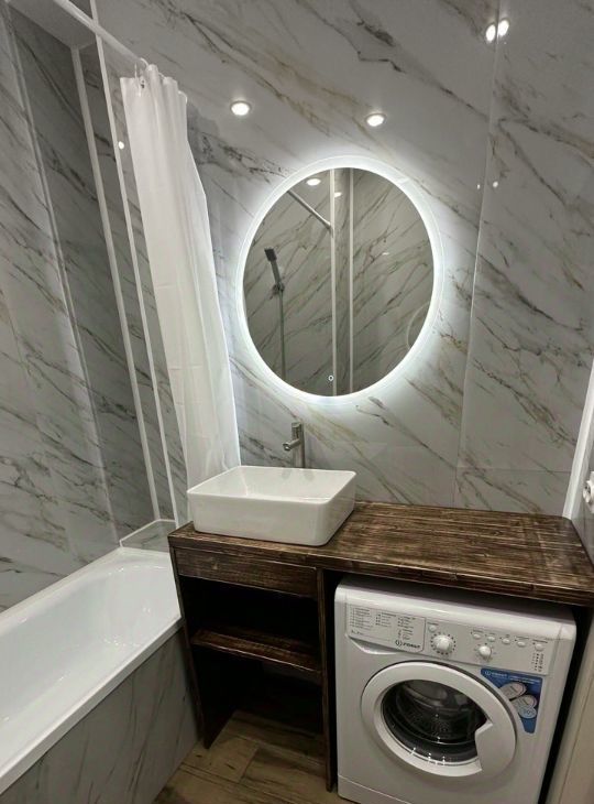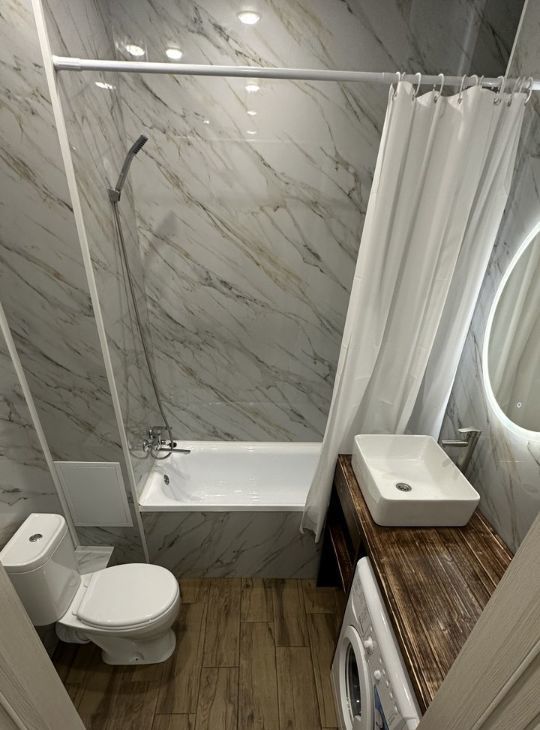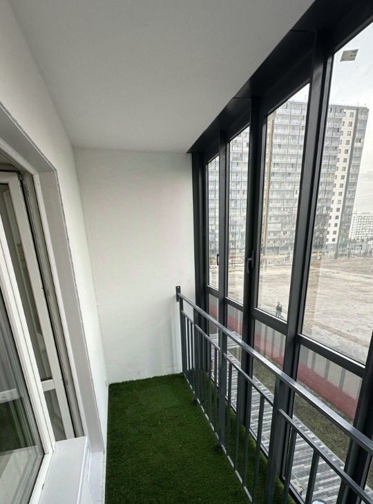 Студия, утеплённый балкон с газоном и выведенной розеткой ( можно обустроить зону отдыха ). Есть вся необходимая для проживания мебель и техника. Большой холодильник, 55 телевизор, большой и комфортный раскладной диван-кровать для двоих человек. На отдельный выключатель выведена светодиодная RGB подсветка. Современный дом, на территории много парковочных мест, детская площадка + футбольное поле. На выходе из подъезда магазин. До остановки 1 минута, до небольшого ТЦ 7 минут пешком.