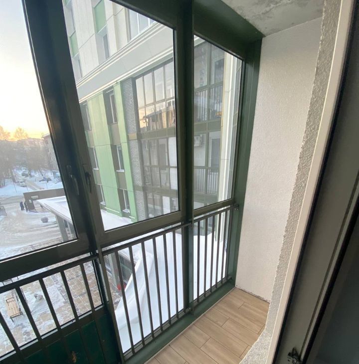 Балкон: Просторный, застеклен и выложен плиткой. Вид из окна в тихий, ухоженный двор.