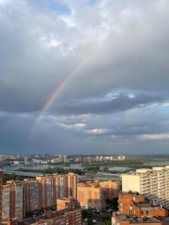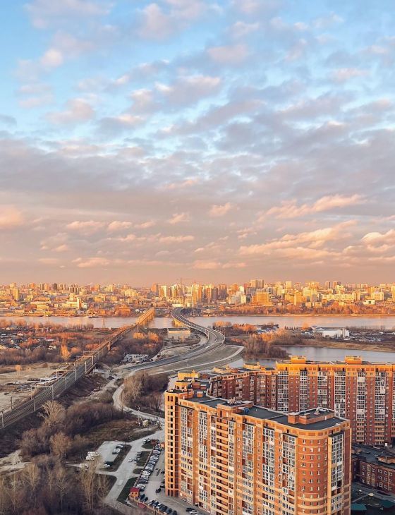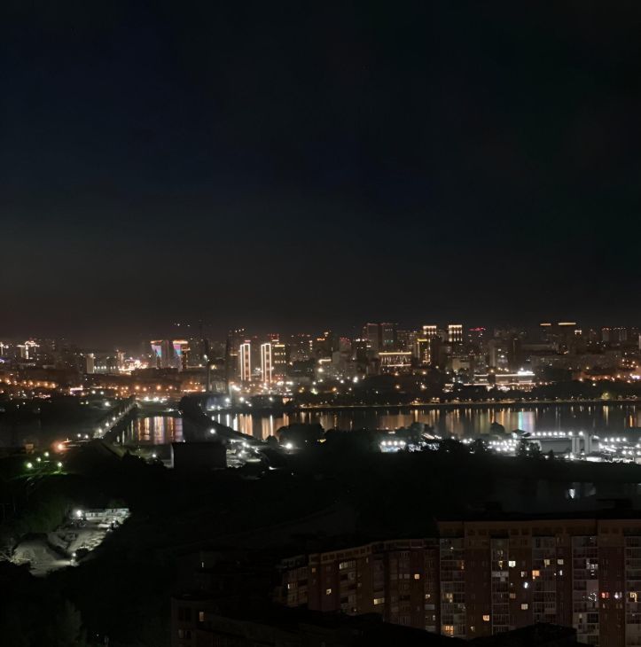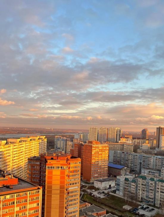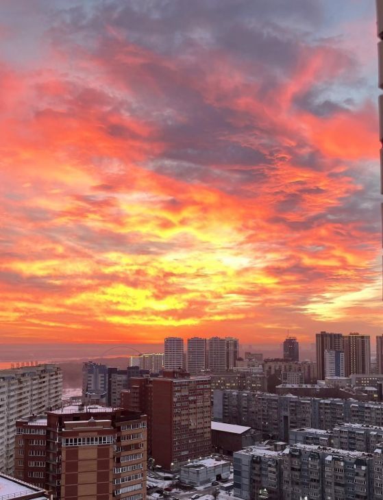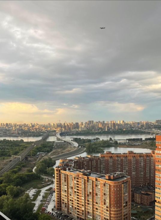 Панорамный вид на правый берег, из окна видно 4 моста, ЛДС, рассветы и салюты