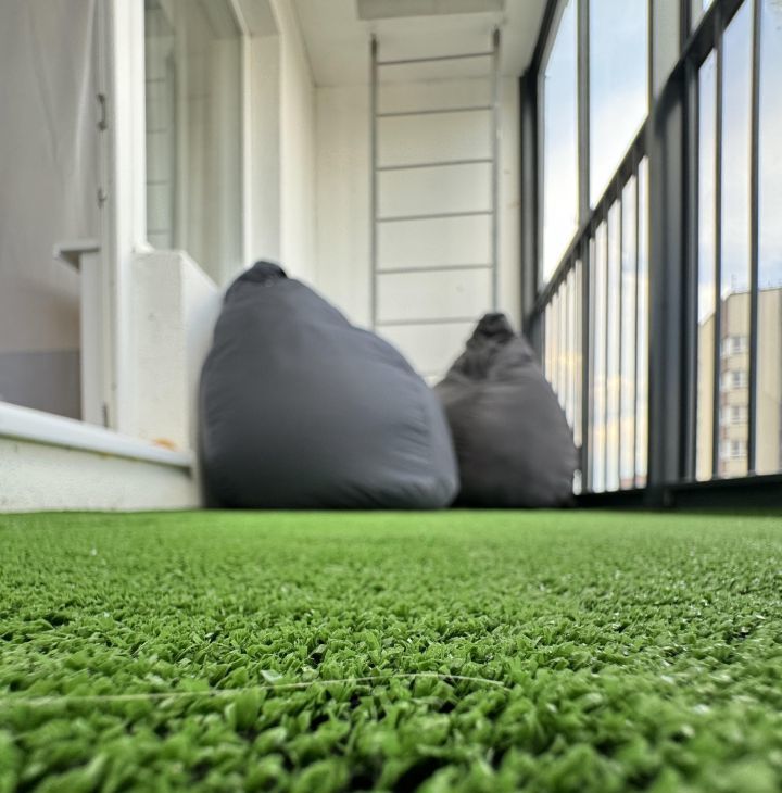 Обои, ламинат 33 класса, керамогранит. Квартира светлая. Имеется просторная облагороженная лоджия с пуфиками и столиком.