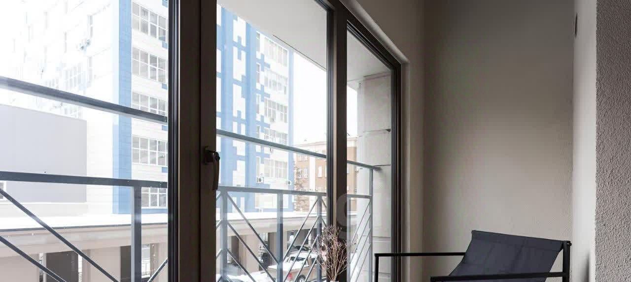 Комфортная зона отдыха и работы: Полноразмерная двуспальная кровать с ортопедическим матрасом, вместительный шкаф-гардеробная, удобное рабочее место и Smart TV с GigaChat. На балконе вас ждет уютное кресло для чтения и релакса.
