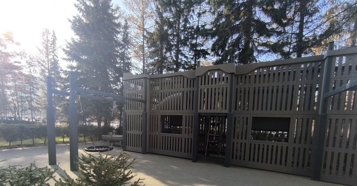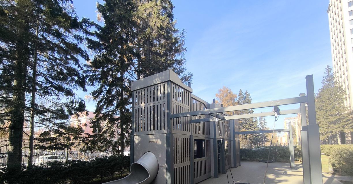 Закрытый благоустроенный двор-парк предлагает возможность насладиться зеленью и свежим воздухом во внутреннем пространстве комплекса. Во дворе установлены зоны активного отдыха и спортплощадка, фонтан и фигуры для игры в шахматы на открытом воздухе. Безопасность обеспечена закрытой территорией и современными системами наблюдения.